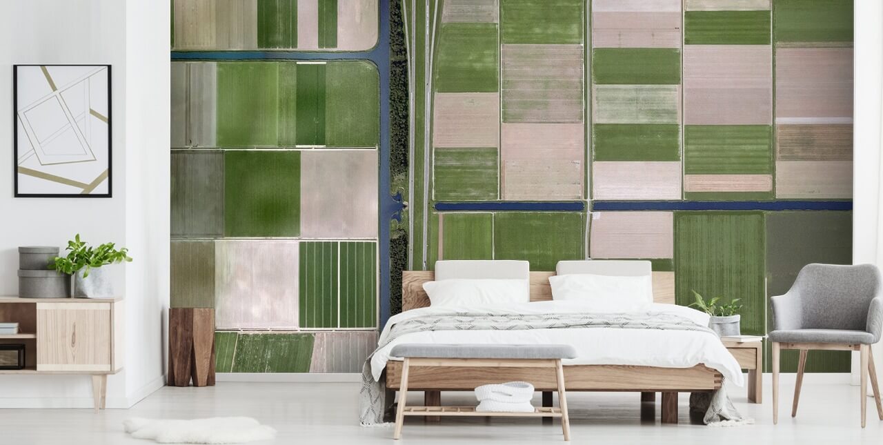 Dejsa der! Tag et kig på denne fantastiske Farmland Aerial View tapet. Skræddersyet til at passe enhver væg!