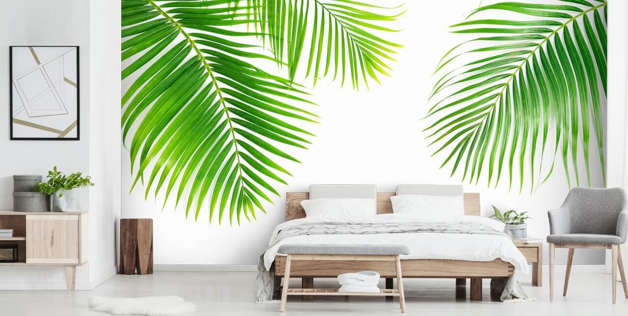 Pryder din væg med denne skræddersyede Green Palm Leaves tapet.