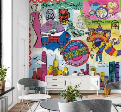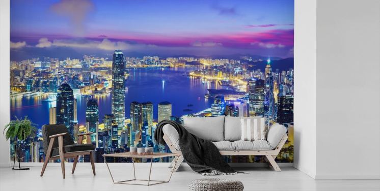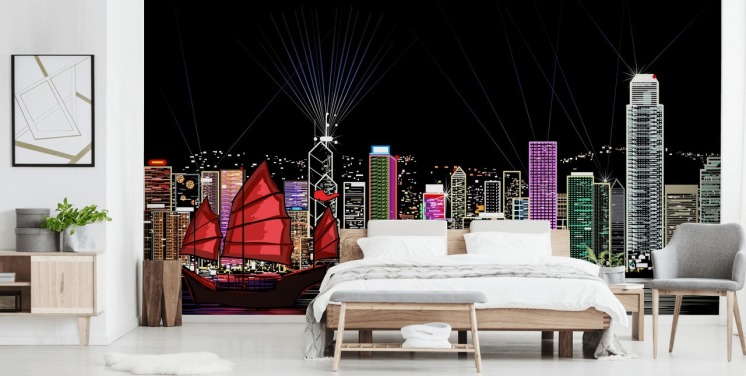 Med en imponerende skyline, fantastisk havn og travle bygader tilbyder Hong Kong masser af muligheder for et imponerende vægmaleri. Denne livlige by kan nydes på værelset ved imponerende fotografering eller dristige illustrationer, der fanger byen om dagen eller om natten.