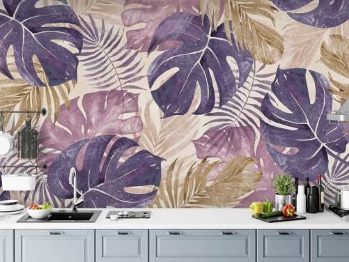 grønne tilpasselige blade tapet vægmaleri kaldet Leaves of Palm Tree til køkkener eller soveværelser