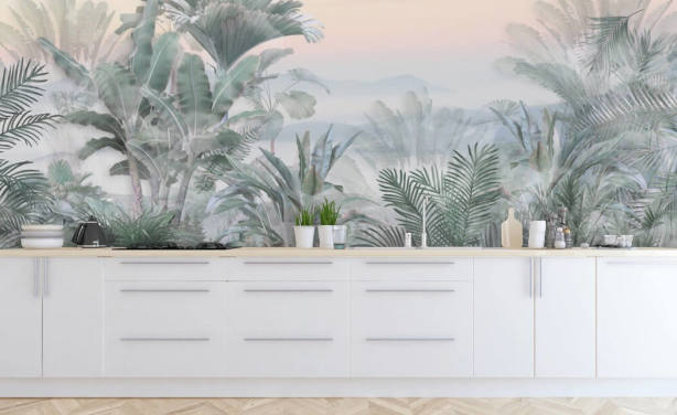 grøn jungle tapetmaleri kaldet Jungle Paradise på Wallsauce til soveværelser, stuer og gange