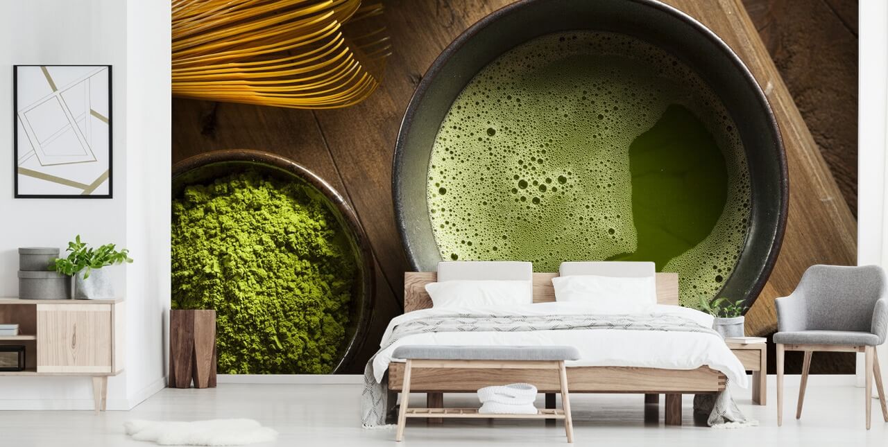 Omdan din tebutik eller café med denne fantastiske Matcha Tea tapet. Hvis din virksomhed handler om rå, ren kvalitet af dine ingredienser, så ville dette rustikke vægmaleri se fantastisk ud på dit mødested.