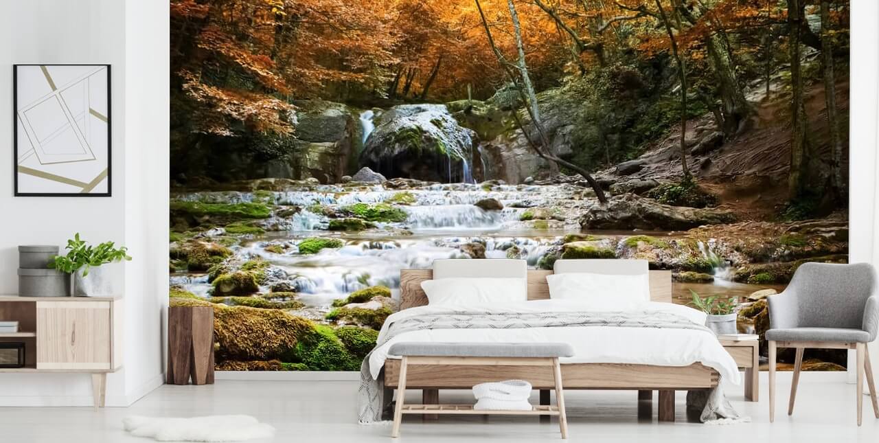 Tag et kig på dette smukke Natural Autumn Waterfall tapet. Skræddersyet til at passe perfekt til din væg.