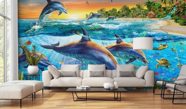 Fra legesyge delfiner til rolige solnedgange, vores fængslende havtapet vil forvandle dit hjem eller kontor. Havet er det perfekte motiv til et vægmaleri, fordi det får os til at føle os rolige og afslappede. Skab et roligt fristed i dit hjem med en fredelig havscene.