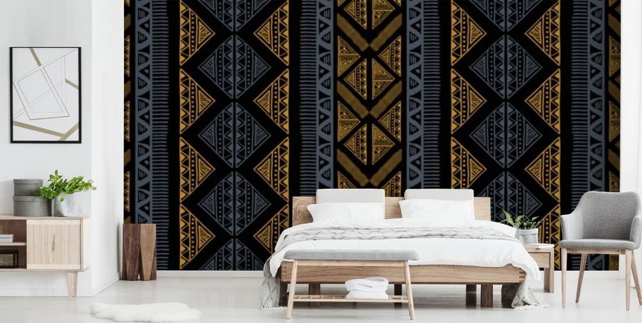 Vil du have en rå og jordmønster funktion væg i dit hjem? Vælg derefter denne smukke Okker og Navy Mønster vægmaleri.