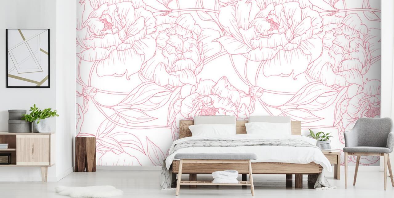 Nyd denne smukke og delikate Pink Floral Line Art tapet. Skræddersyet til at passe til væggen.