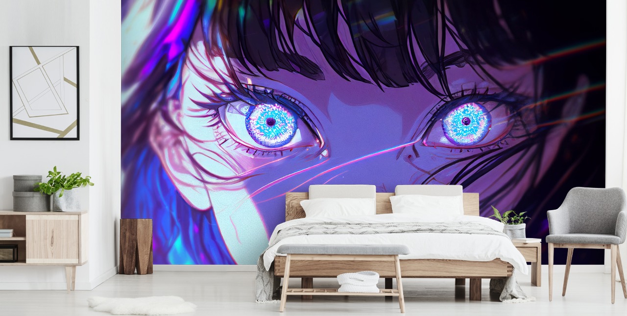 Smuk Anime Girl med fantastiske lyse blå øjne vil lyse dit værelse op. Hvis du er interesseret i Anime og ønsker at skabe en visuelt fantastisk funktion til dit værelse, så kan dette være lige det, du leder efter.