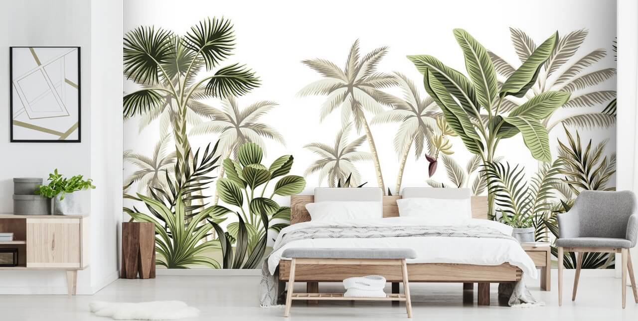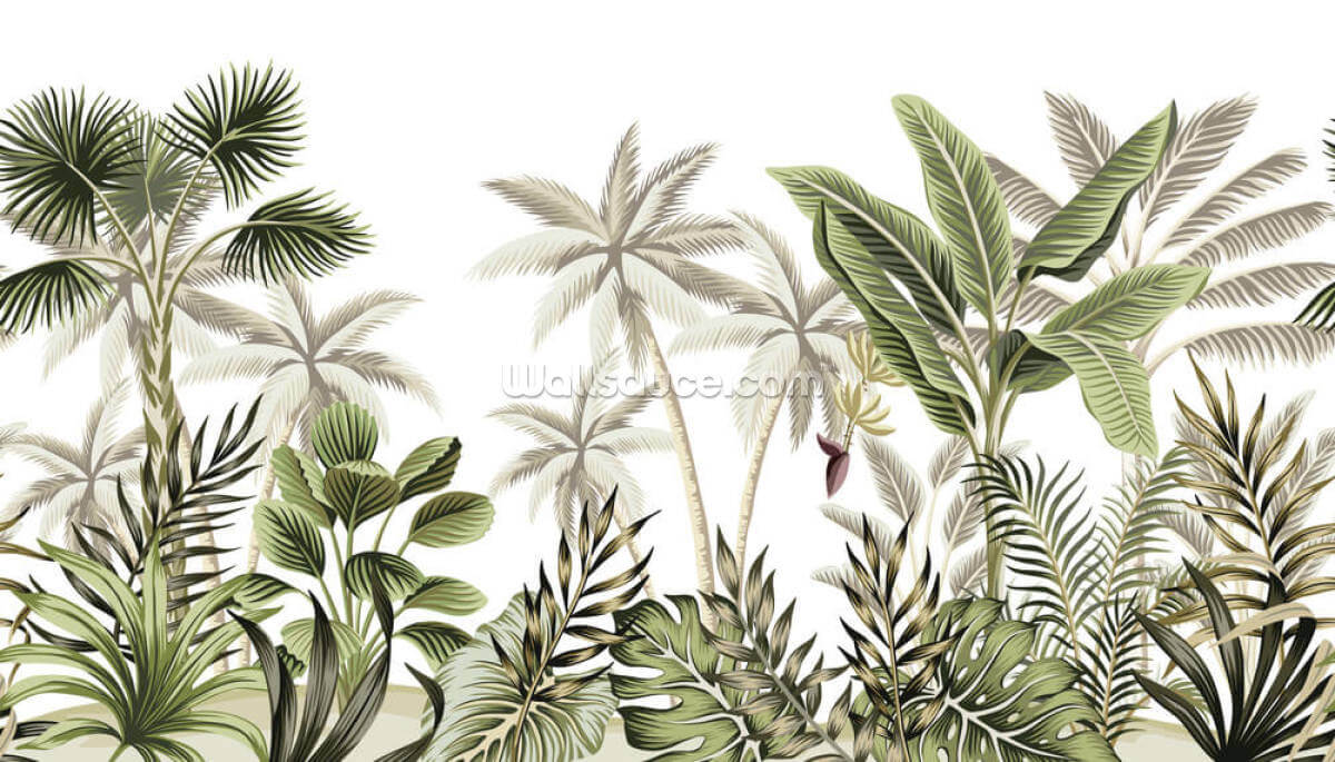 Få den tropiske følelse med dette grønne Quiet Jungle vægmaleri i dit hjem eller arbejdsplads. Ideel, hvis du ejer en trendy bar eller kølig frisørsalon! Forestil dig dine kunders reaktioner, når de ser dette trendy tropiske vægmaleri - du vil ikke være i stand til at holde dem væk!
