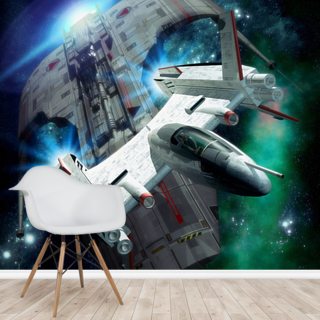 Denne kæbe-droppe sci-fi tapet ville gøre en episk funktion væg i en mand hule, gaming room, en sci-fi fan soveværelse eller endda en techy butik! Denne futuristiske blå tapet ville se fantastisk parret med blå og hvide værelse tilbehør, såsom en hvid gaming desk og en blå læder gaming stol.