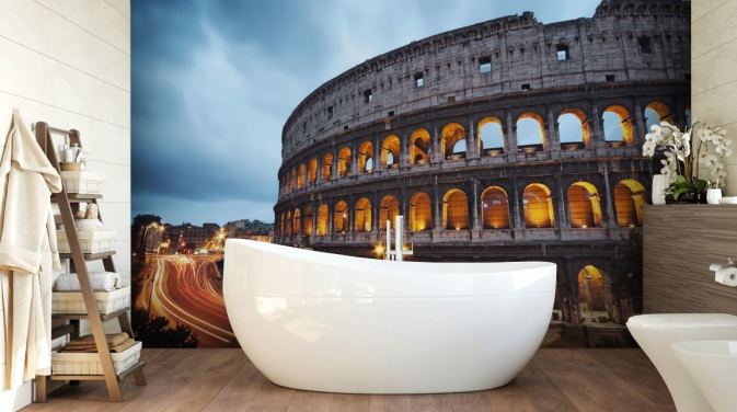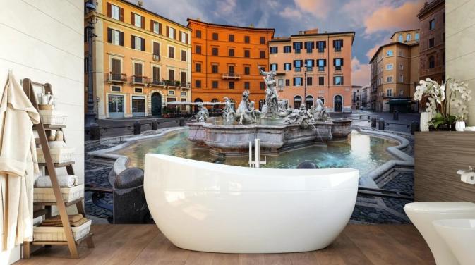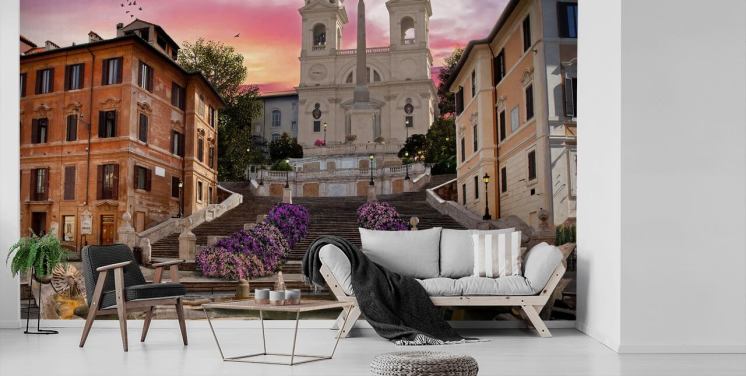 Rom er rig på gammel historie og romantik og har mange fantastiske scener, herunder Trevi-fontænen, St Peters og Colosseum. Bring denne romantiske by lige ind på dit værelse med fantastisk Rom tapet. Denne arkitektonisk smukke by kan skabe drama og varme i ethvert rum!