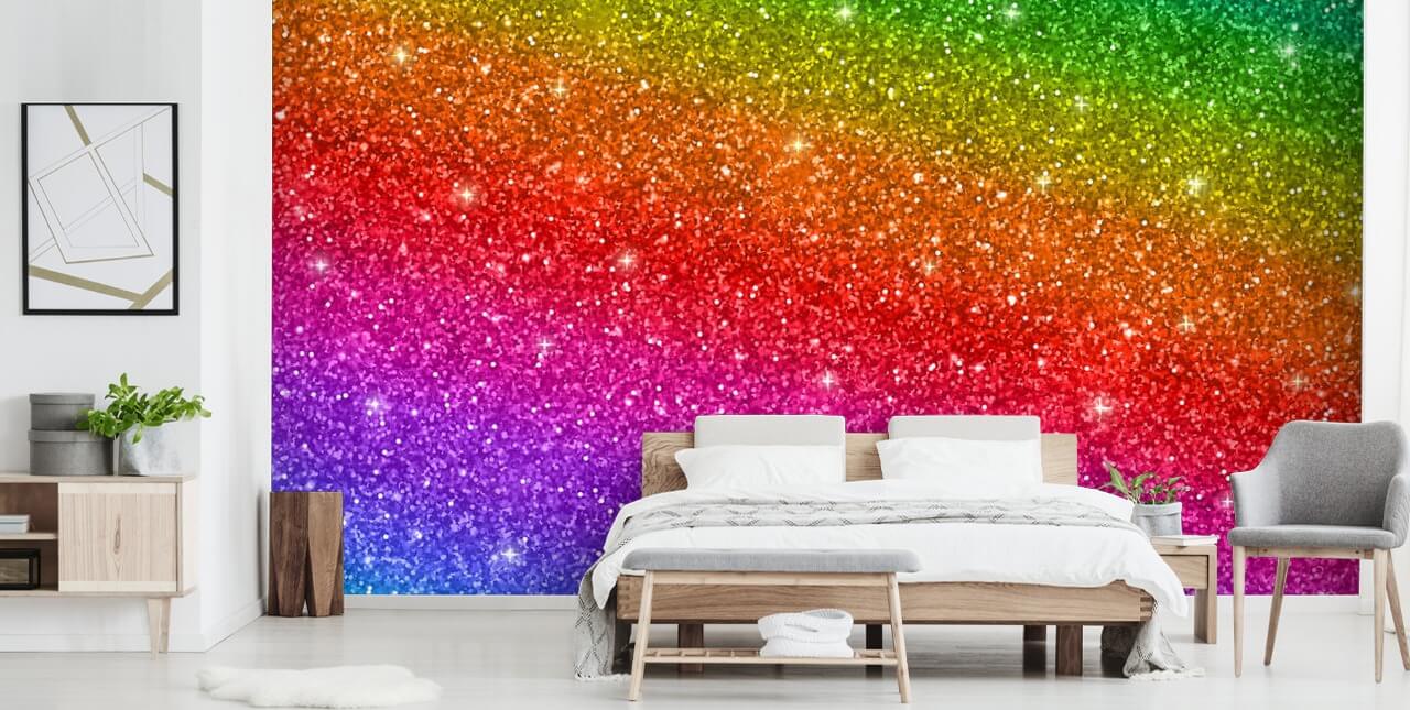 Find alle regnbue tema indvendige stykker til at gå med denne fantastiske regnbue, glitter-effekt tapet. Bestil online med din væg målinger, valg af tapet materiale og forbløffe dine venner og familie næste gang de kommer rundt!