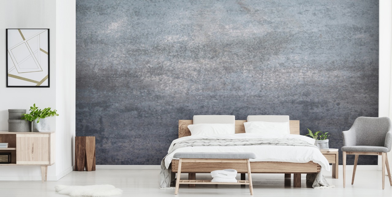Shop det industrielle look med denne skræddersyede Smokey Steel tapet vægmaleri.