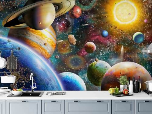 5... 4... 3... 2... 1... tænding... vi har løft af! Tag en tur blandt stjernerne fra komforten i dit hjem med vores rumtapetdesign.