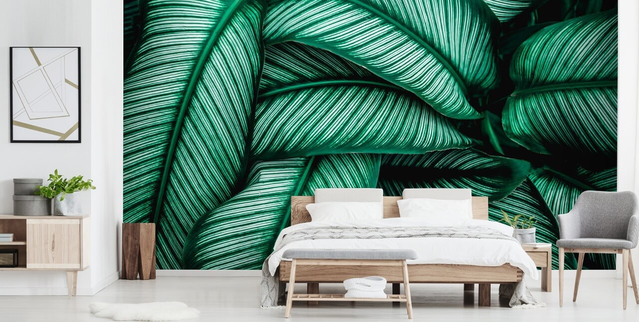 Få en stor funktion væg med denne tropiske Striped Leaf tapet. Skræddersyet til at passe til din væg dimensioner.