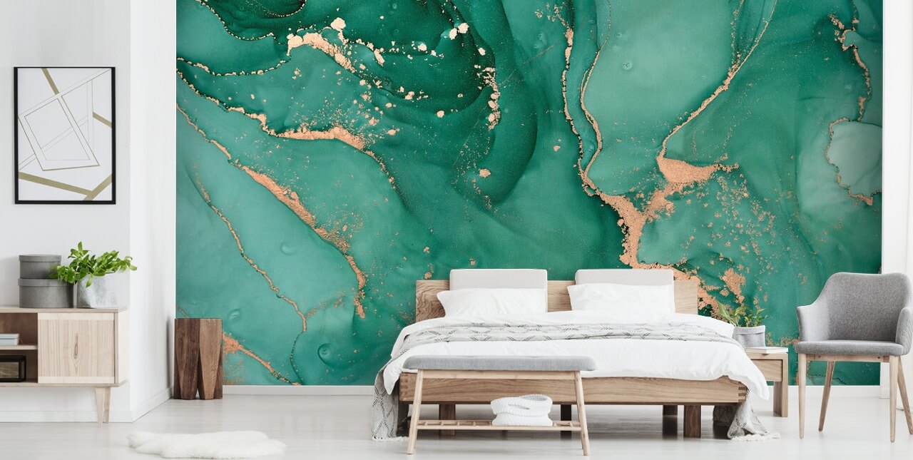 Shop dette skræddersyede teal og guld akvarel tapetmaleri fra Wallsauce.