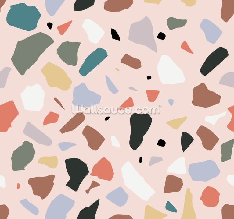 Pastel Pink, Navy, Beige Terrazzo Baggrund