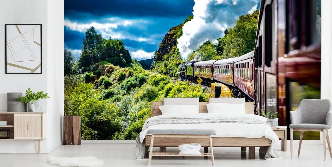 Denne fantastiske tog tapet ville se godt ud i mange forskellige typer af værelser. Hvis installeret i din lounge, hvorfor ikke placere din sofa på væggen, hvor der er græsset randen i billedet? Så vil det se ud som om toget passerer dig, mens du læne dig tilbage og slappe af!