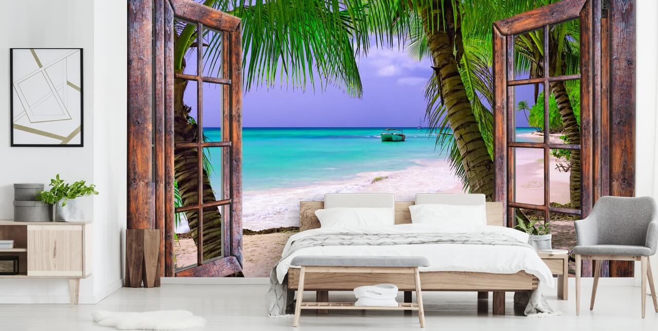 Hvis du vil føle, at du er på ferie hver dag, så vælg dette skræddersyede Tropical Bay Vista tapetmaleri fra Wallsauce. Dette smukke palmetræstapet er ideelt til en funktionsvæg i et soveværelse, badeværelse og mere. Hvor vil du installere dette vindue tapet?