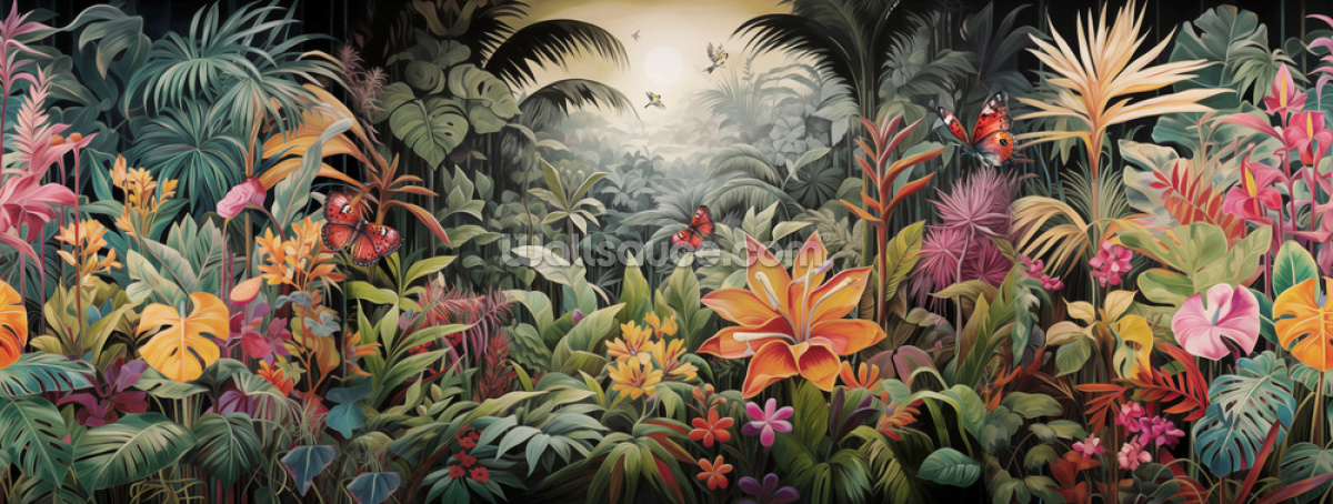 Dette jungle-vægmaleri tager dig med på en rejse kun et blik væk, ind i de tætte tropiske jungler fyldt med levende, rige nuancer og frodig flora. Hvert vægmaleri er specialtrykt for at sikre den perfekte pasform til dine vægge og omdanne dem til kunst, der bringer et strejf af det eksotiske lige ind i dit hjem.