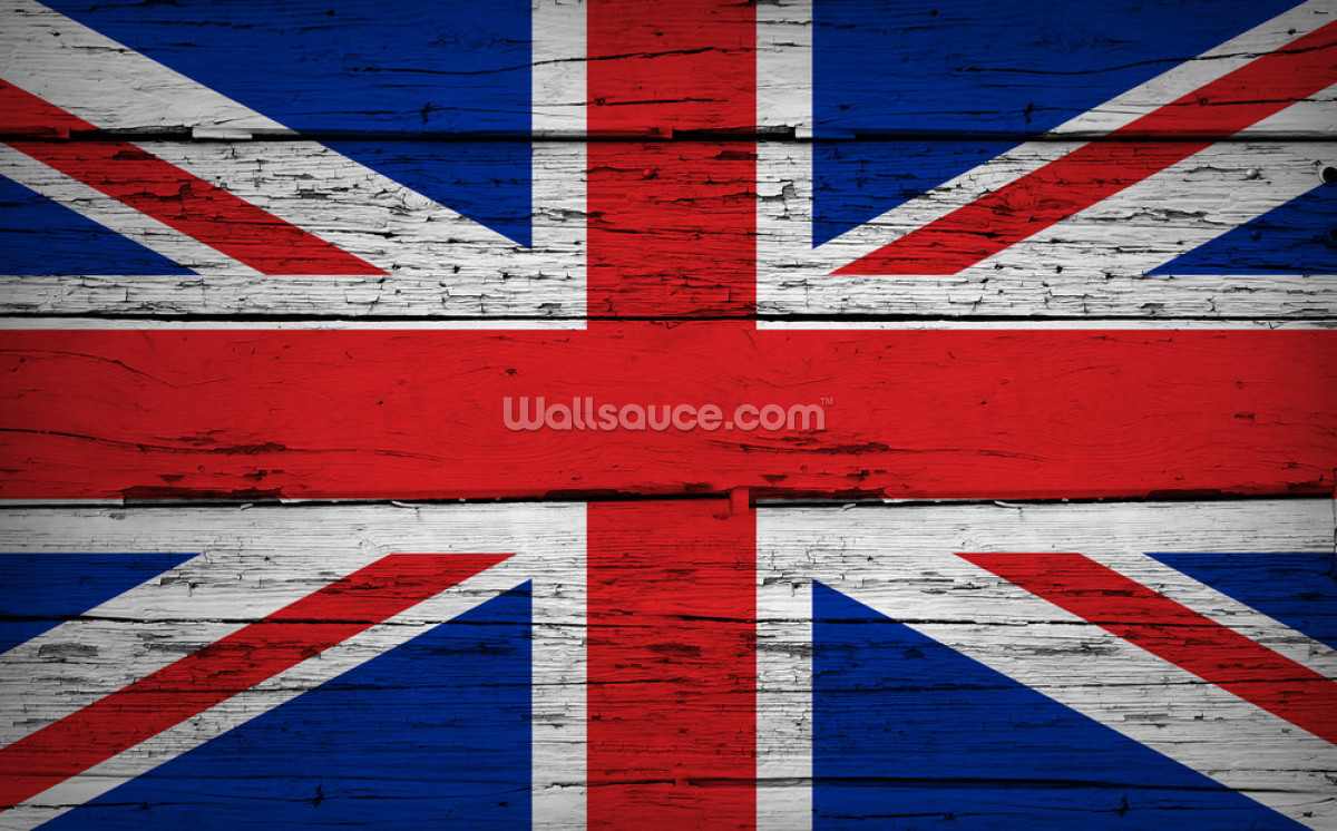 Union Jack UK Flag på en træ baggrund tapet vægmaleri.