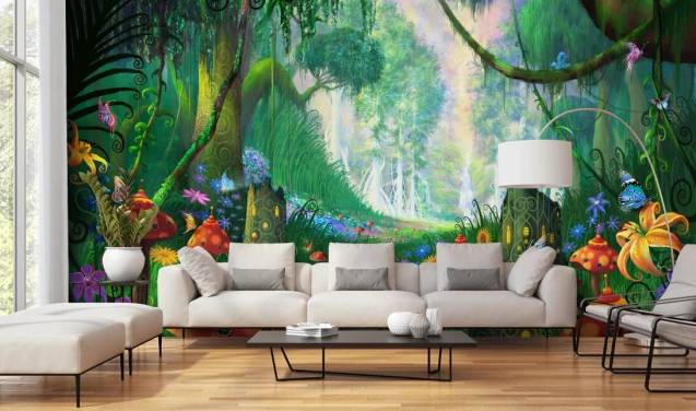 farverigt tilpassbart fe-tapetmaleri kaldet Hidden Treasure af Philip Straub til barnets soveværelse