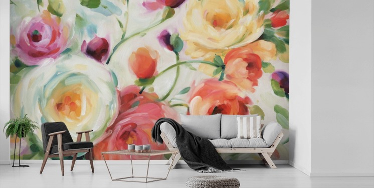 hvidt tilpassbart blomstervægmaleri kaldet Distressed White Florals III af Rafal Kulik