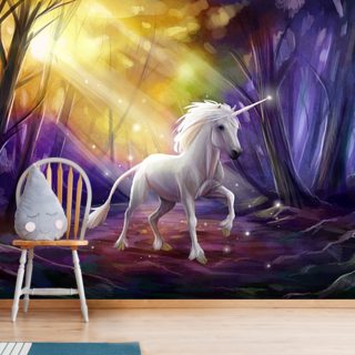 Enhjørninger, regnbuer, heste, fortryllende skove, abstrakte bjerge, popkunst, farverige mønstre - vi har en enorm samling af vægmalerier, der er perfekte til en piges soveværelse. Uanset om de elsker ting, der er smukke i lyserødt eller mørkegrønt og mystisk, vil de helt sikkert finde noget, de elsker i vores udvalg af tapet til pigers soveværelser.