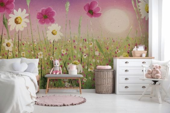 lyst brugerdefineret blomstereng tapetmaleri kaldet Delicate Floral Meadow til soveværelser