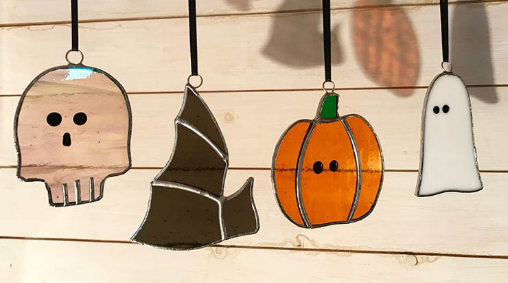 Compra tus adornos de Halloween para el árbol, como estos adorables adornos de cristal. No sólo son un poco espeluznantes, sino que estos adornos de Halloween quedan preciosos con la luz natural brillando a través de ellos. ¿Por qué no cuelgas también algunos de estos adornos en tus ventanas para tener una bonita decoración de Halloween?