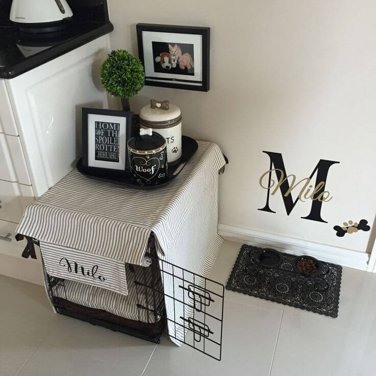 No importa si sólo dispone de un espacio limitado. Puede crear una lujosa habitación para su perro en cualquier lugar. Una forma sencilla pero eficaz de conseguirlo sería adornar una caja con tela para crear una cortina o su propio techo. Incluso podría utilizar la misma tela para la cama de su perro. De este modo, la jaula parecerá segura y acogedora para tu perrito. Al combinar la decoración de su peludo con la suya, creará un espacio sin fisuras.