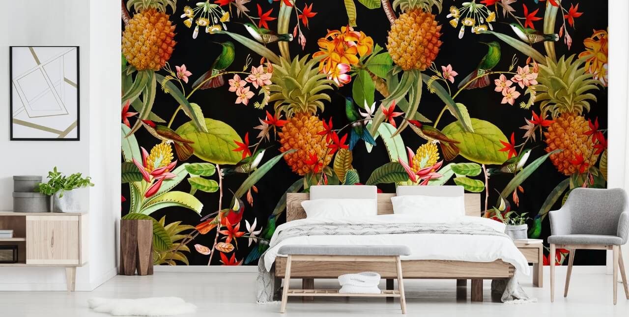 Consigue esa sensación de jungla con este papel pintado a medida de piñas tropicales. Fácil de pedir e instalar.