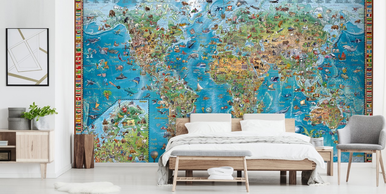 Disfruta de las vistas del mundo en tu habitación con este increíble mural con un mapa del mundo de Ray & Co.