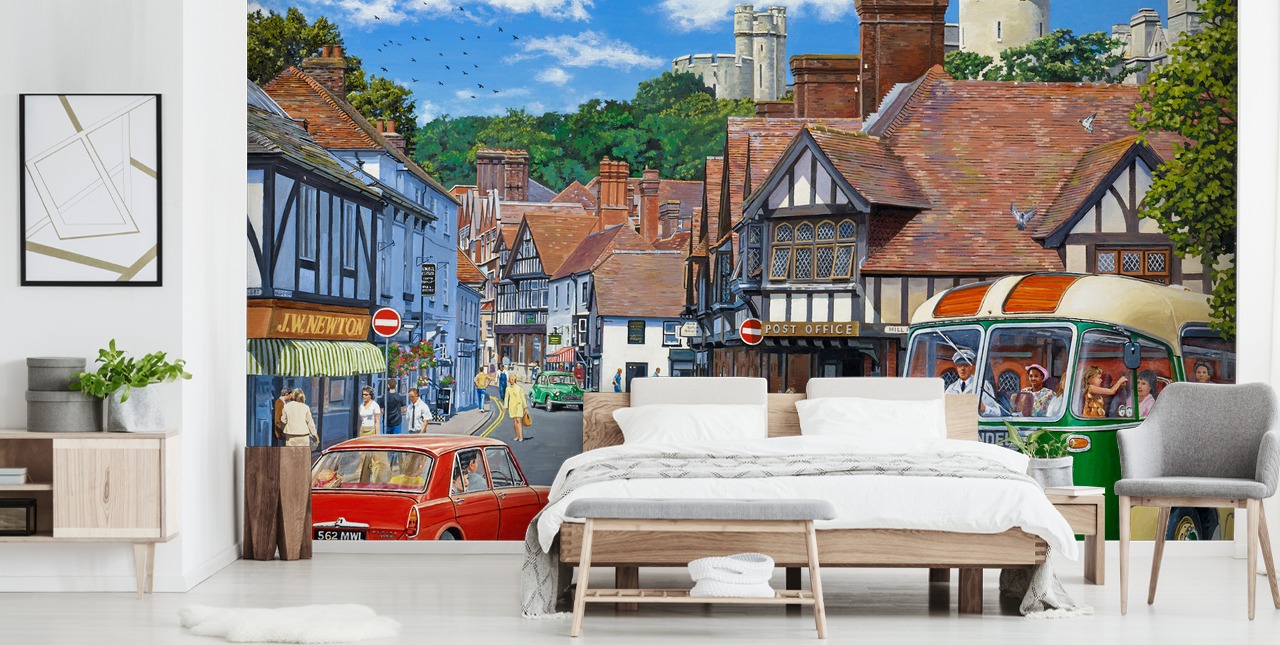 Este increíble mural mural de pared «Llegando a Arundel» de Trevor Mitchell ofrece a los residentes de residencias de ancianos un alegre viaje al pasado.