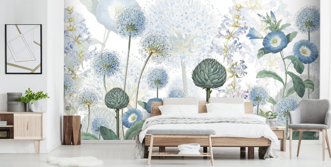 Se suministra en paneles y es fácil de instalar, elige nuestro hermoso papel pintado Blue Wild Meadow hecho a medida.