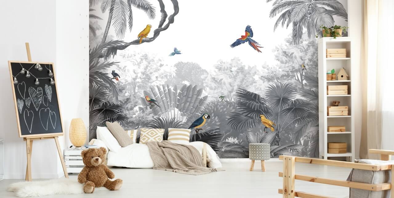 Canopy Jungle en blanco y negro - Fondo de pantalla de pájaros para niños