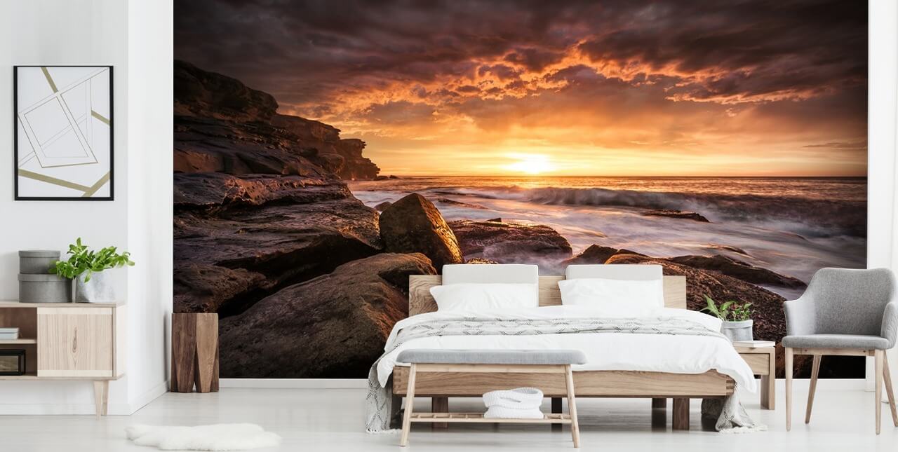 Si quieres una pared destacada que sea a la vez llamativa y relajante, elige este impresionante papel pintado de Cape Solander. Romántico y relajante, este papel pintado costero sería una pared increíble en tu dormitorio principal.