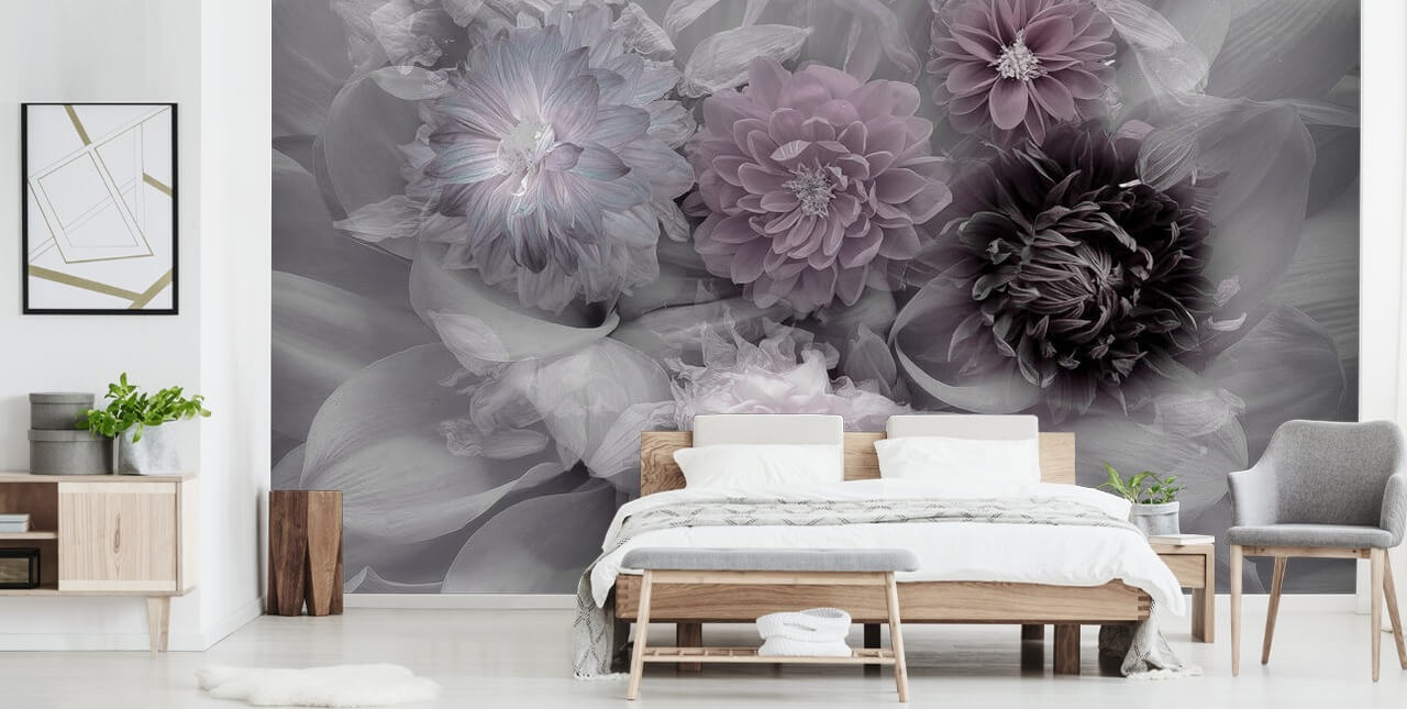 Crea una pared romántica en tu hogar con este mural de papel pintado floral hecho a medida de Dahlia Dream.