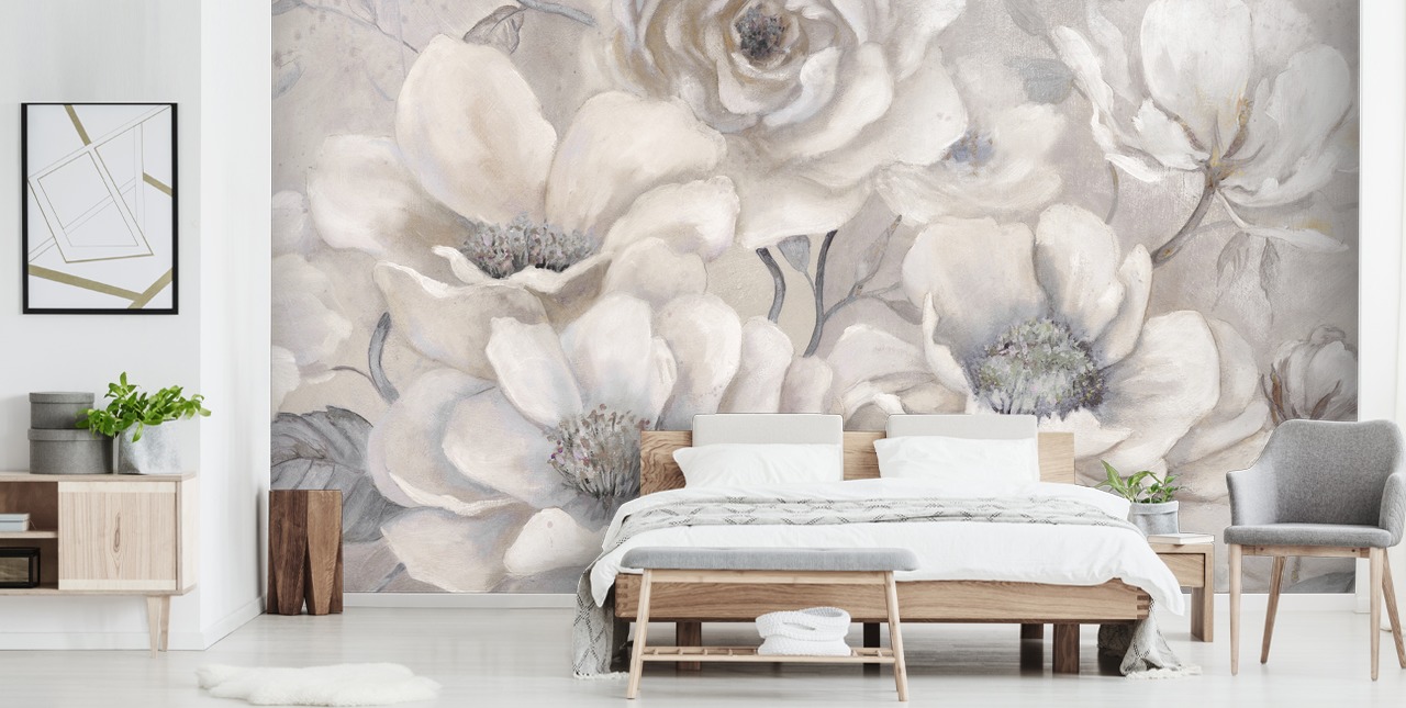 Flores de peltre completas - Papel pintado floral blanco