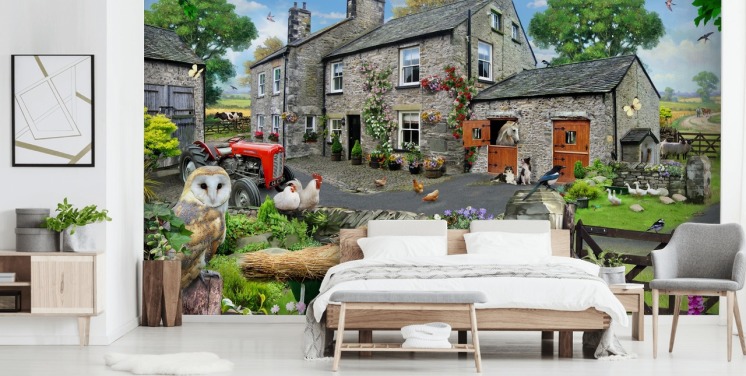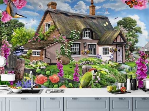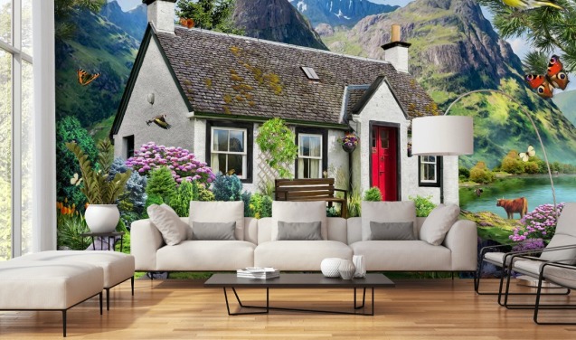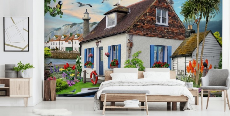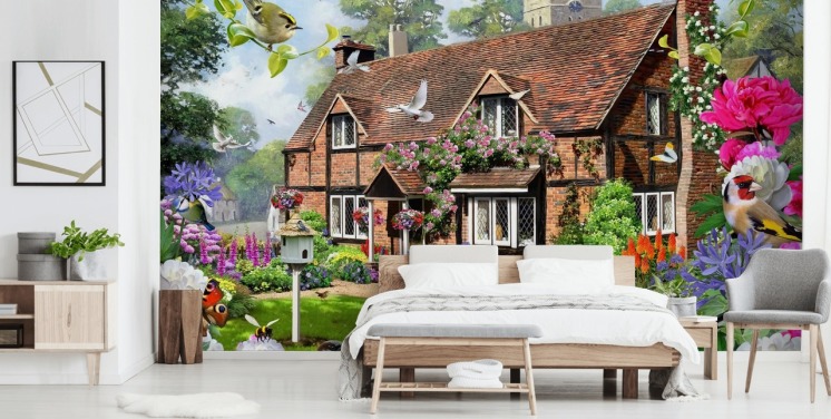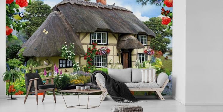 La colección de murales de pared de cabañas de Howard Robinson ofrece una gama de hermosas, coloridas y tradicionales casas de campo inglesas como arte mural.