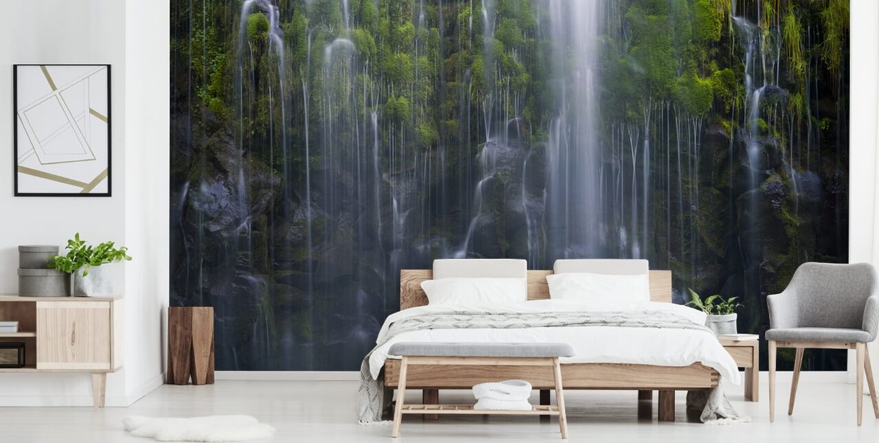 Siente que tus preocupaciones se desvanecen con este hermoso mural de pared Retiro Mágico. Ideal para el baño o el dormitorio, este papel pintado en cascada se vería maravilloso combinado con plantas tropicales de color verde hoja y muebles blancos. Los muebles blancos atraerán la atención hacia el mural de la pared que el resto de la habitación. También sugerimos accesorios verdes para reflejar los verdes de este papel pintado natural.