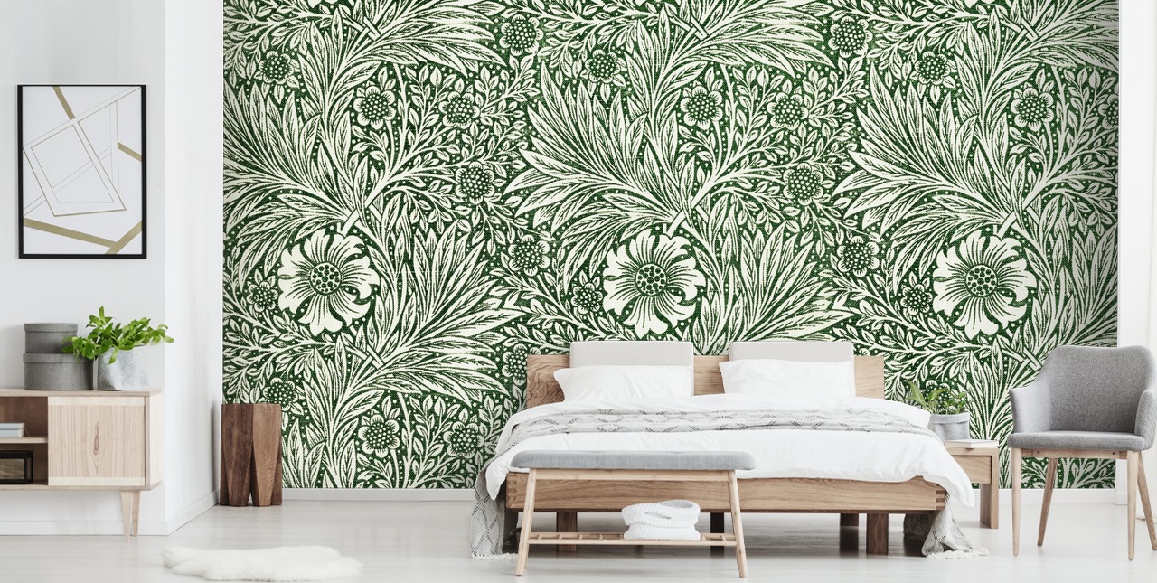 Adorna las paredes de tu casa con este hermoso mural de pared con patrón de caléndula diseñado por el famoso William Morris. Perfecto para el hogar de cualquier entusiasta de lo vintage o cualquier persona que quiera crear un factor sorpresa único.