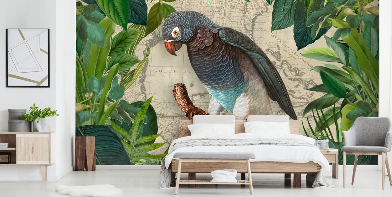 Adorna tus paredes con este papel pintado a medida Parrots Paradise Garden.