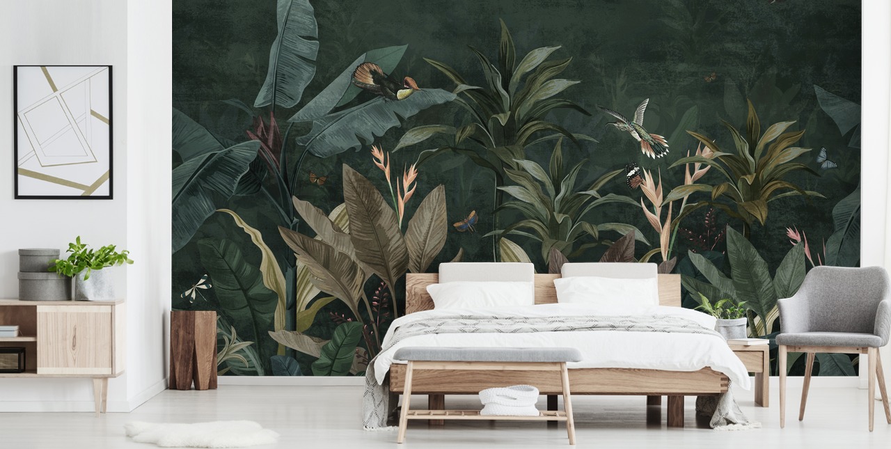 Este papel pintado de la jungla de Secret Escape II ya está aquí, listo para personalizarlo según tus dimensiones y colgarlo con orgullo en tu hogar. Un complemento perfecto para un dormitorio con sus tonos profundos, este mural botánico de papel pintado sin duda te ayudará en tu búsqueda de un sueño reparador (con estilo).