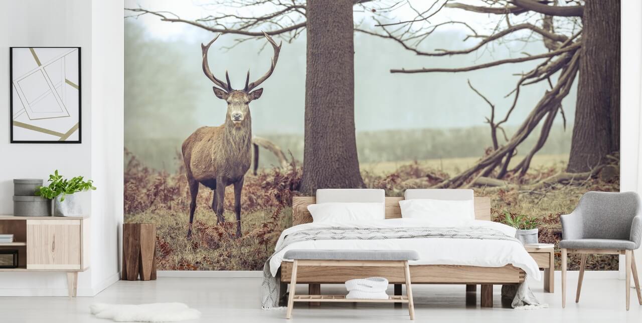 Adorna tus paredes con este papel pintado fotográfico capturando a uno de los animales más orgullosos. Este papel pintado de ciervo en el bosque es ideal para crear una pared destacada.