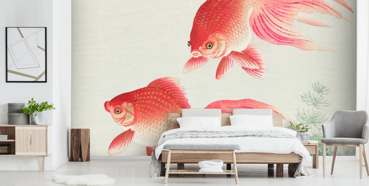 Si quieres darle un toque oriental a tu hogar, todo lo que tienes que hacer es elegir este mural de papel pintado Two Veil Goldfish hecho a medida.