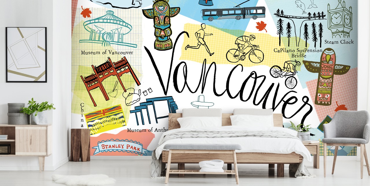 Regálate este papel pintado personalizado de Vancouver Culture de nuestra colección de papeles pintados de diseño Farida Zaman.