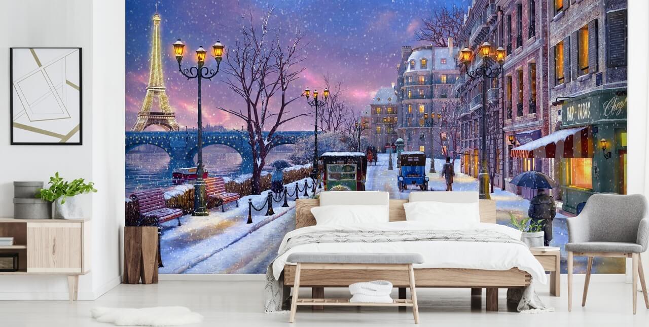 Retroceda en el tiempo con este mural de papel pintado personalizado de Invierno en París.