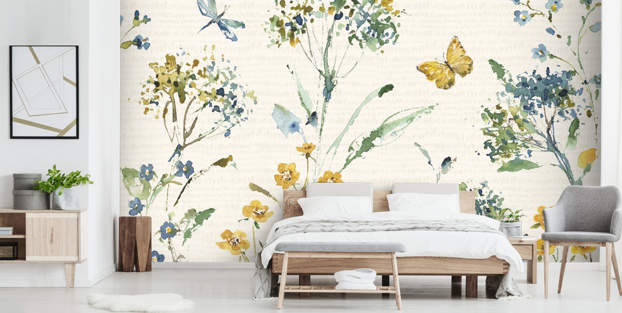 Este mural de pared único cuenta con un diseño exquisito con una variedad de flores, libélulas vibrantes y mariposas etéreas que darán vida a tu espacio. Los colores vivos del mural son ricos en detalles y se combinan para crear un ambiente de felicidad y tranquilidad.