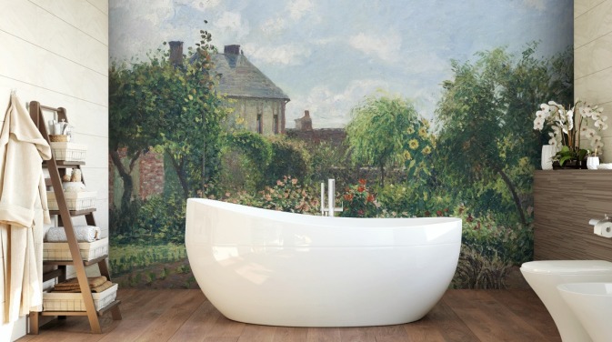 mural de papel pintado de bellas artes llamado El estanque de nenúfares de Claude Monet para baños y dormitorios