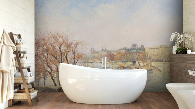 fine art wallpaper mural called Pont Neuf by Pierre-Auguste Renoir for bedrooms, home offices and living rooms